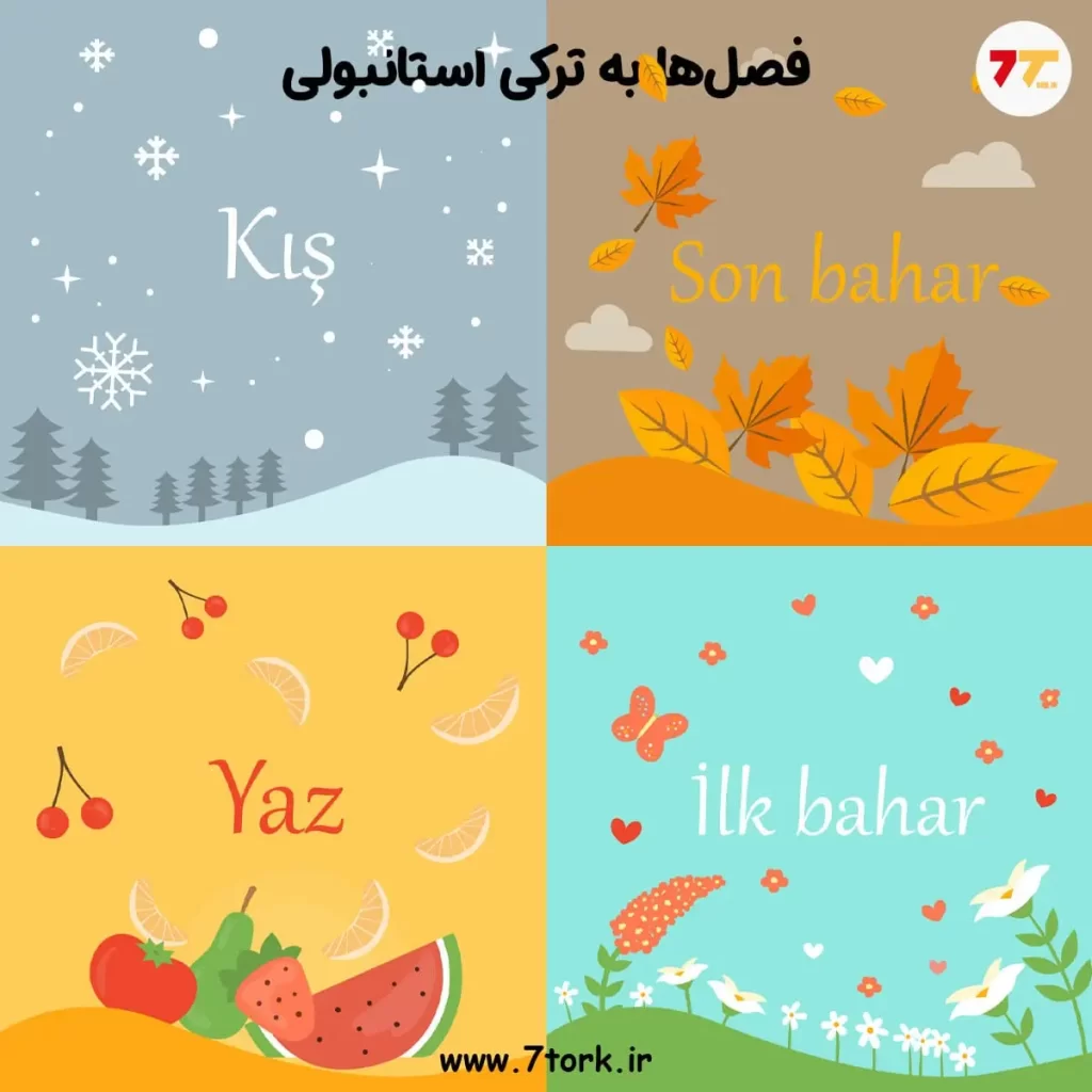 | ماههای فصل | فصلها به ترکی | فصلها به فارسی |